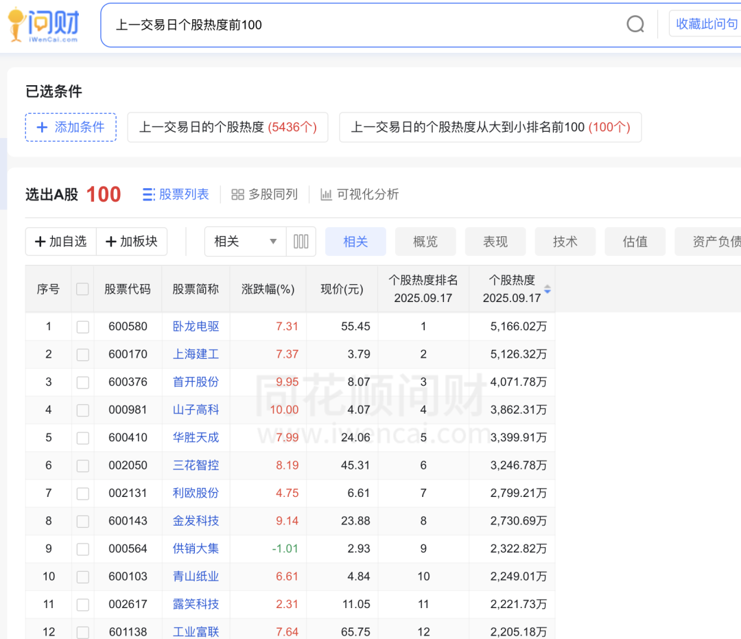df = pywencai.get(query='上一交易日个股热度前100', loop=True)