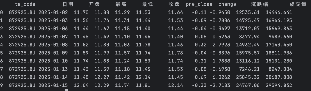 直接获取tushare返回得到的数据框列名,和akshare肯定是不同的,需要映射到你所熟悉的AKShare列名。