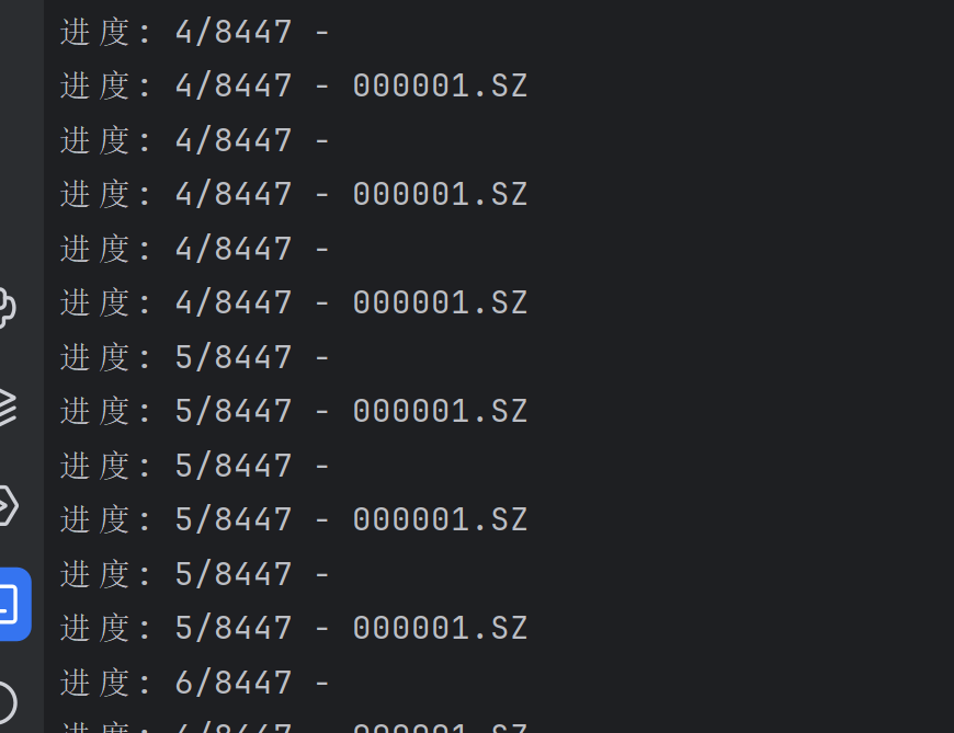 print(f"进度: {data['finished']}/{data['total']} - {data['stockcode']}")