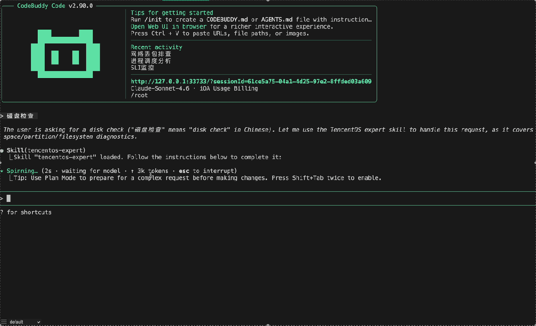1、登录腾讯云控制台,创建 CVM 2、镜像选TencentOS Server 4 for AI(Tencentos Server 4 for X86_64 AI) 3、选择 CPU 或 GPU 实例 → 启动镜像 4、镜像已默认集成在codebuddy CLI中, 在codebuddy CLI中启用自然语言运维