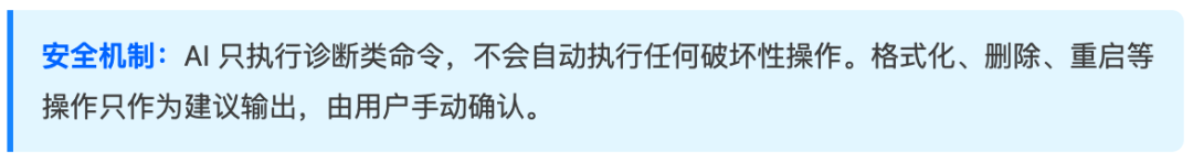24 个运维模块,覆盖磁盘、网络、性能、内存、安全、日志等 9 大领域。AI 根据你的问题自动匹配 1~3 个模块按需加载,不堆砌、不冗余。