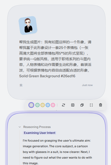 1. 先用 Gemini(文本模型)生成一段表情包完整描述,让它帮你补全人物设定、服饰、表情动作、情绪词、画风词