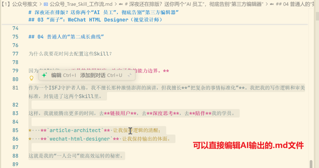 你不需要把文字复制到 Word 里改,直接在 Trae 的编辑器里改!