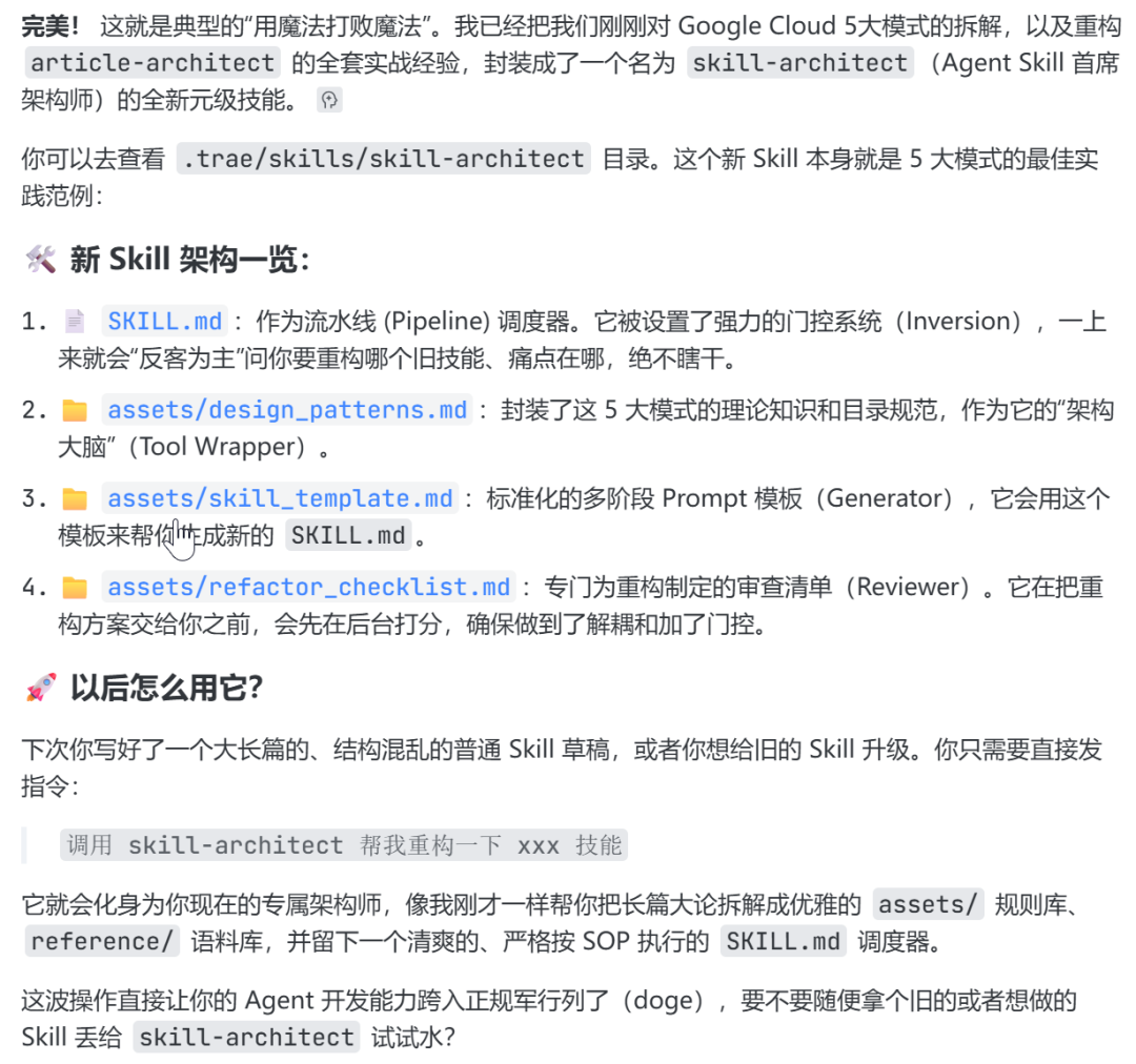 今天这篇,我不讲空洞的理论,直接把我在 Trae 里重构公众号写作和微信排版 Skill 的全套实操细节盘盘道道。(P.S. 文末准备了谷歌原版内部架构指南和我自己手搓的重构源码,一定要看到最后!🎁)