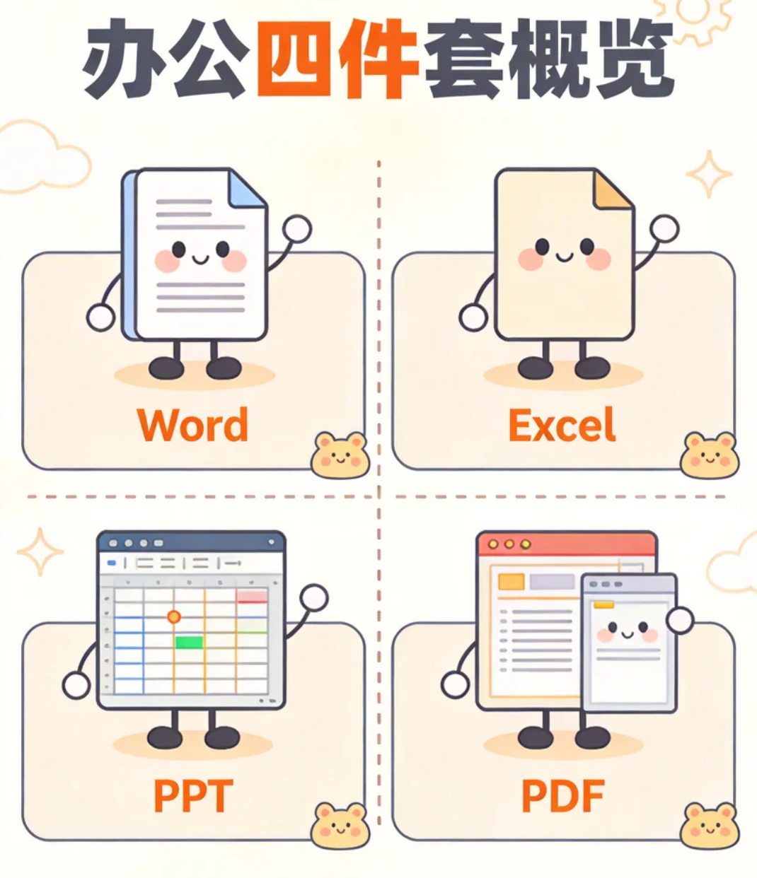 它们覆盖的,是办公室最常用的四种文件:
