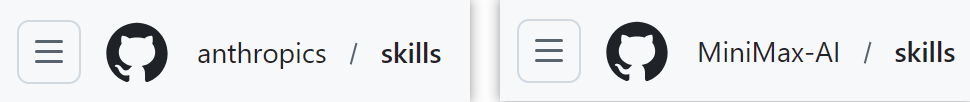 MiniMax 官方仓库:https://github.com/MiniMax-AI/skills