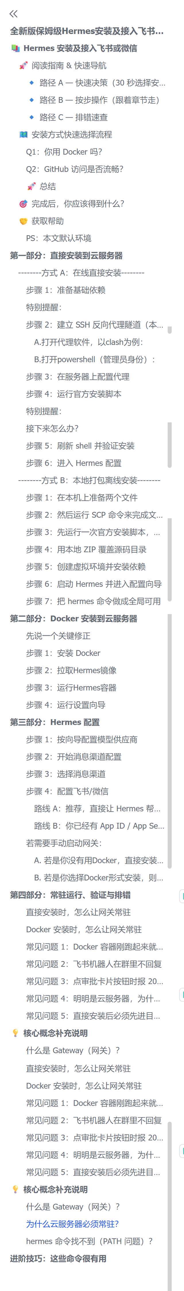 我更想告诉你一件事:我已经把自己踩过的坑、试出来的路、跑通的流程,整理成了一份服务器安装 Hermes 的保姆级教程。