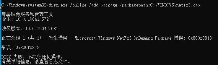.NET Framework 3.5以管理员身份打开命令提示符。 输入以下命令并执行(请将<路径到你的Windows安装介质>替换为实际的Windows安装媒体路径): dism /online /enable-feature /featurename:NetFx3 /all /Source:<路径到你的Windows安装介质>\sources\sxs