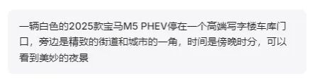首先我先用最近很火的 Nano Banana Pro 模型生成我想要的图片,是一辆宝马汽车在城市街道上的场景,如下图所示: