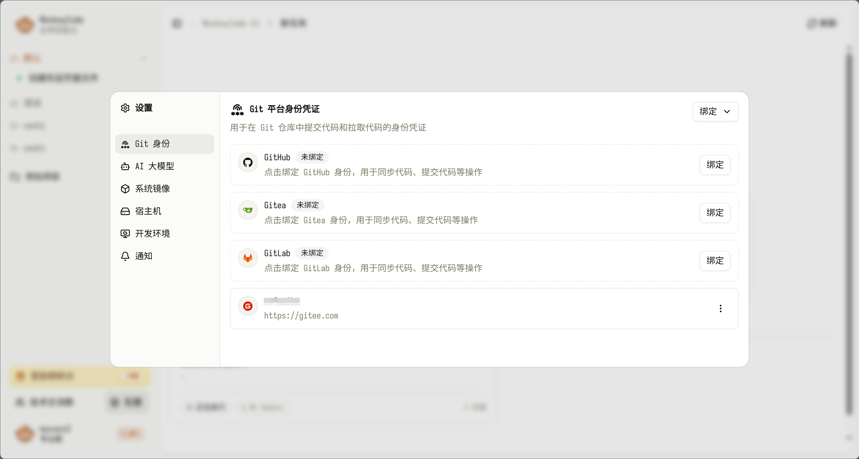 1. 进入MonkeyCode控制台,绑定项目的Git仓库(chaitin/MonkeyCode);