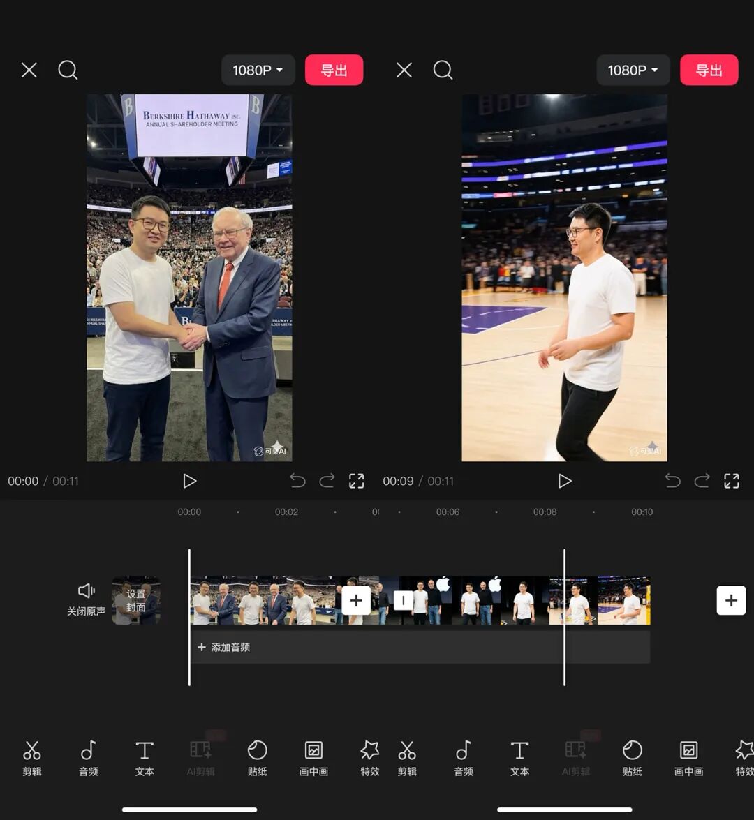 最后将生成的两个5秒小视频,放入视频剪辑软件中进行拼接,我这块选择的是剪映。