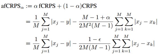 通过与CRPS加权,避免fCRPS的评分退化问题。而为避免数值误差问题,调整计算顺序后的afCRPS可以得到: