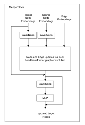 图 4 AIFS编码器/解码器GNN块结构,使用multi-head graph Transformer卷积运算来更新处理器的节点和边(论文[2])