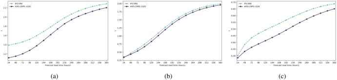 [1]: AIFS-CRPS: Ensemble forecasting using a model trained with a loss function based on the continuous ranked probability score, Lang, S., Alexe, M., Clare, M., Roberts, C., Adewoyin, R., Ben Bouallègue, Z., Chantry, M., Dramsch, J., Dueben, P., Hahner, S., Maciel, P., Prieto-Nemesio, A., O’Brien, C., Pinault, F., Polster, J., Raoult, B., Tietsche, S., Leutbecher, M.