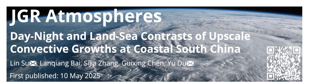 上述研究工作已在2025年5月发表在大气科学权威期刊《Journal of Geophysical Research: Atmospheres》上,第一作者和通讯作者为中山大学的苏琳副教授,中山大学杜宇教授为共同通讯作者,合作者包括佛山龙卷中心白兰强博士、应急管理部国家自然灾害防治研究院张思嘉博士、以及中山大学陈桂兴教授。