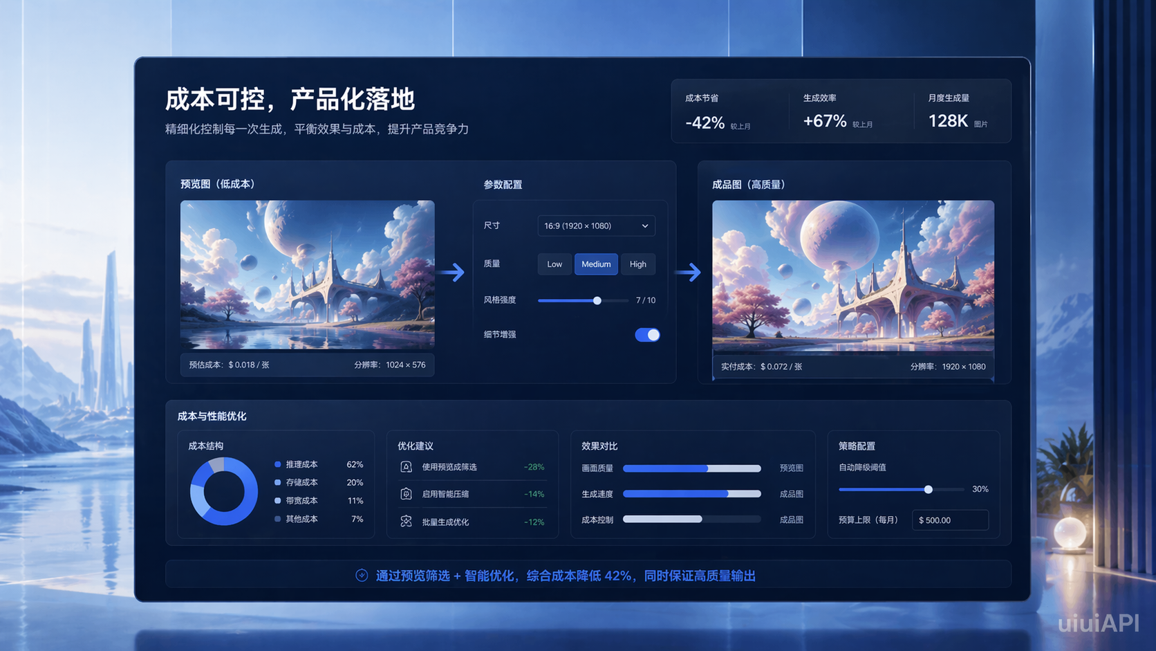 官方指南列出的 size、quality、format、compression、background 等能力,看起来只是参数,实际上对应的是工程侧最核心的四个问题:性能、成本、交付格式和视觉一致性。