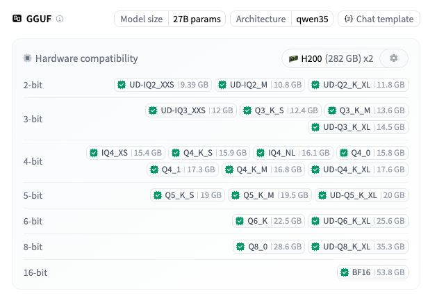 文件大小比 FP16 原版直接砍半(27B 模型约 27GB 权重),兼容 Transformers / vLLM / SGLang / KTransformers,基本上是零风险选项