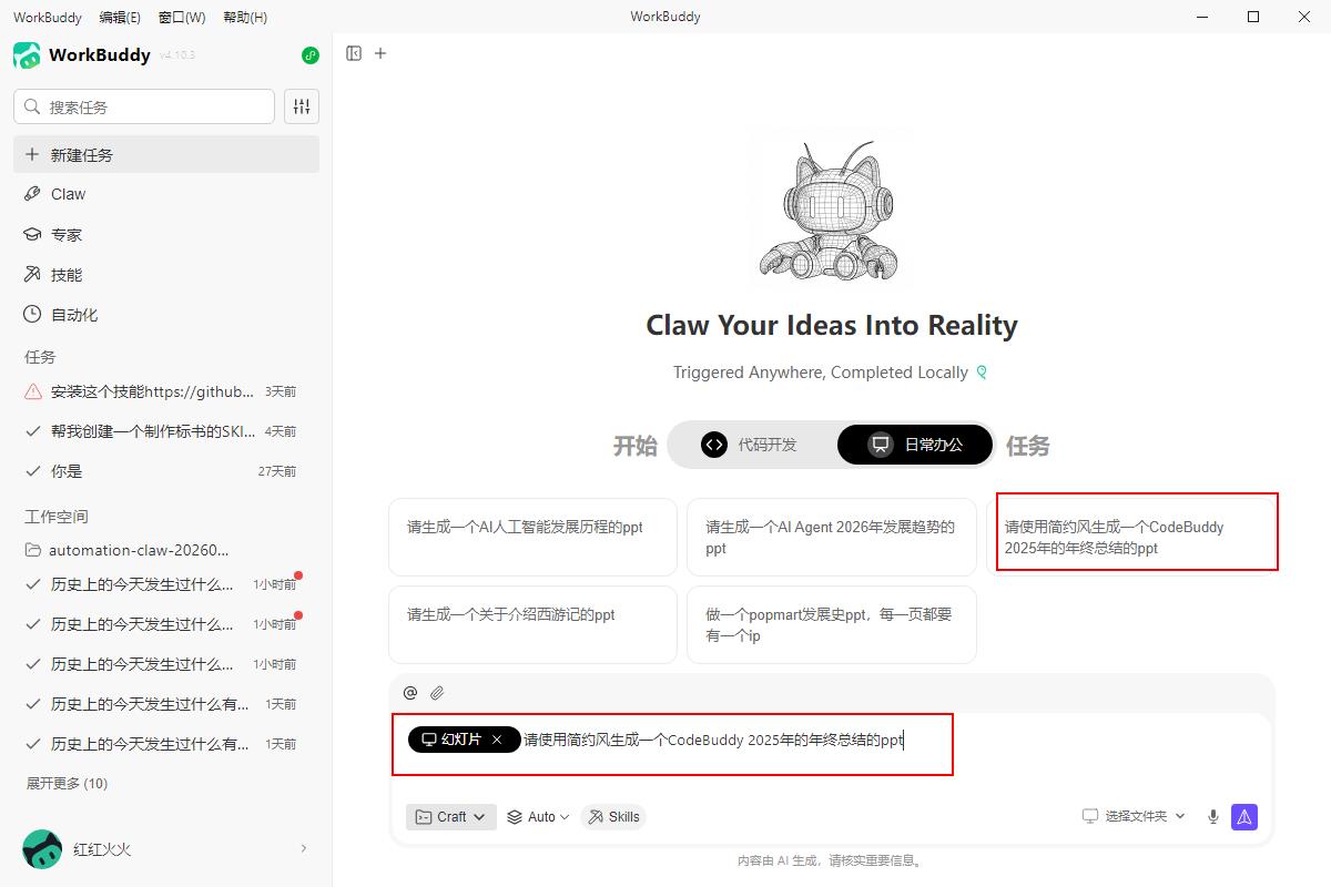 WorkBuddy实战 AI一键生成PPT