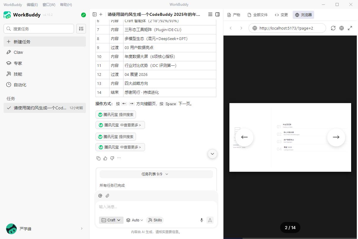 生成完成后,可直接在WorkBuddy中预览PPT效果。