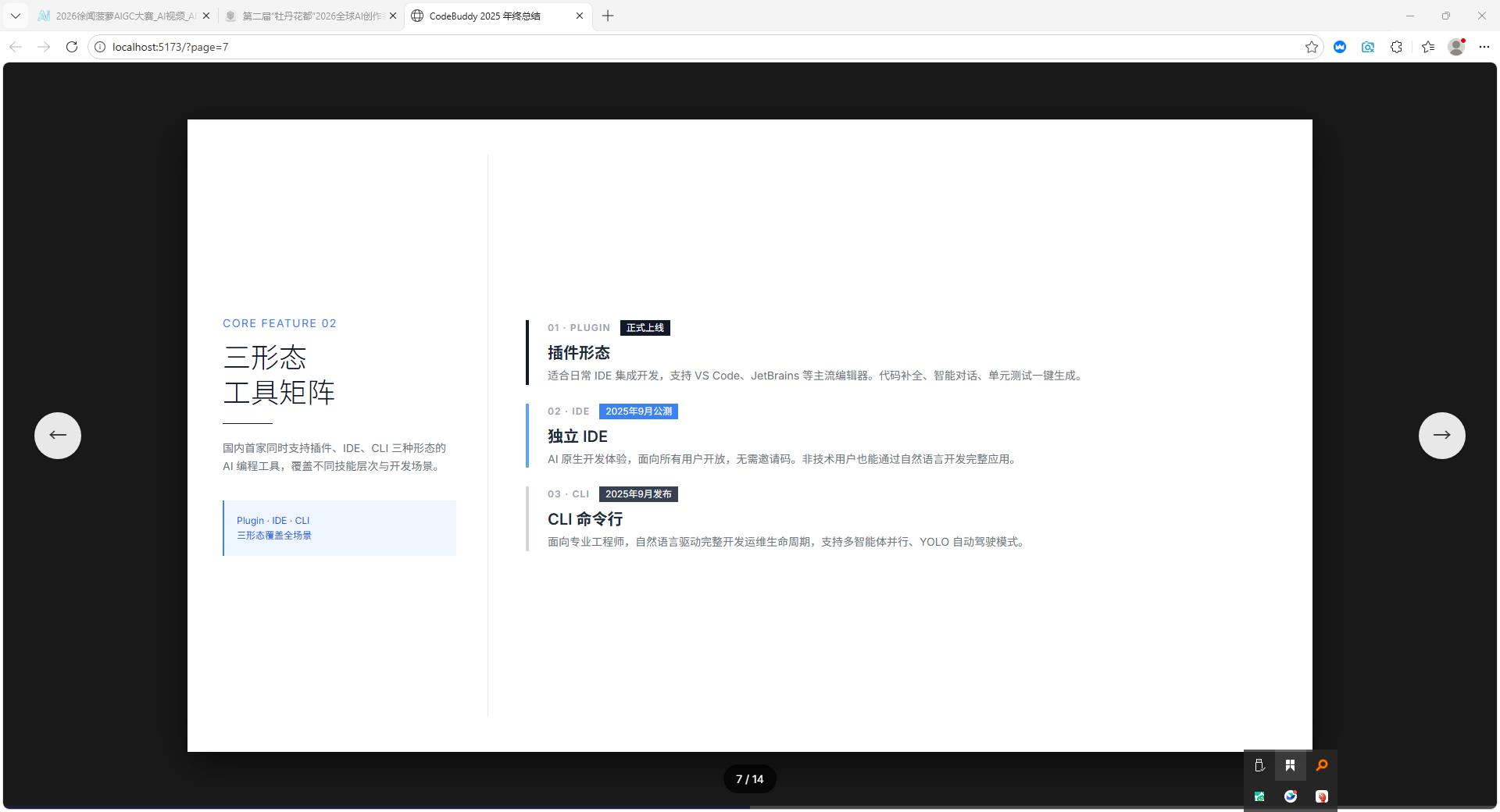以"请使用简约风生成一个CodeBuddy 2025年的年终总结的ppt "为例,生成的PPT通常包含以下内容结构: