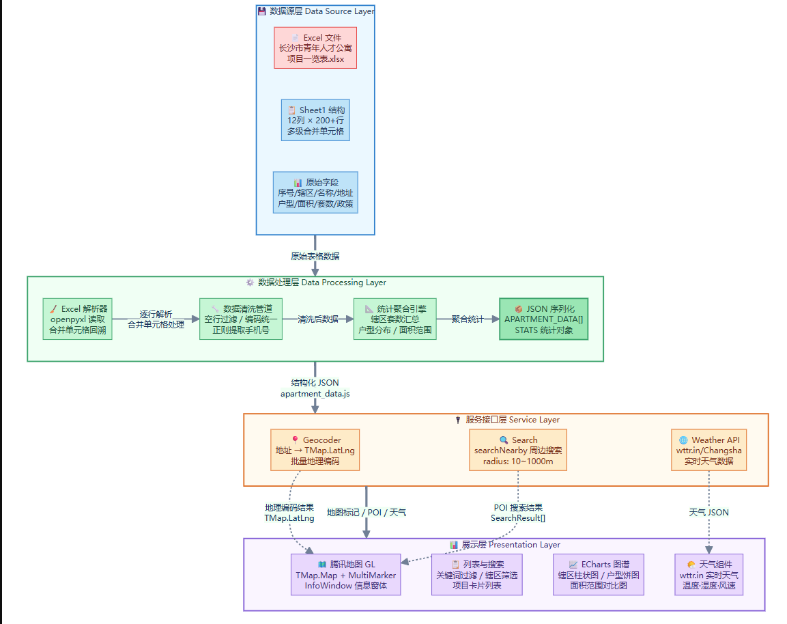 构建一个基于腾讯地图的长沙市青年人才公寓可视化平台,实现以下核心目标: