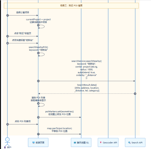 第三层 | 服务接口层 | 外部 API 调用 | Geocoder 地理编码、Search POI 搜索、Weather API |