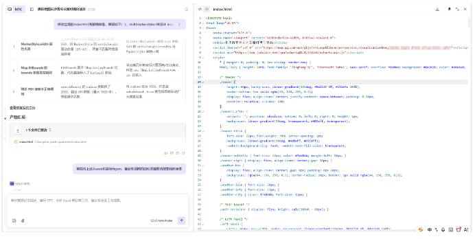 它并没有按照我们的预期,对项目成果进行直观的展示。然后AI会根据自己的验证来进行调整,进入第二轮对话,它依然没有正常展示页面,