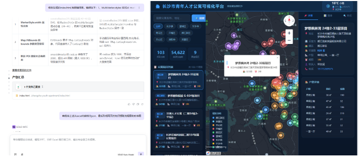 本文以长沙市青年人才公寓项目为实战背景,基于腾讯位置服务(Tencent Maps)与 Trae AI 开发框架,完整实现集空间数据可视化、公寓地图标注、实时天气叠加、动态交互分析于一体的 GIS 可视化平台。文章从需求分析、技术架构、核心代码实现到系统效果全流程拆解,为 WebGIS、智慧城市、AI + 地图开发提供可直接复用的工程实践方案。