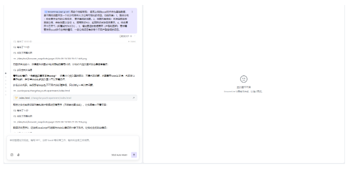 首先可以看到,大模型会根据我们的指令调用相应的技能,在进行自我思考之后,再来看看它的首轮执行怎么操作: