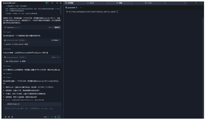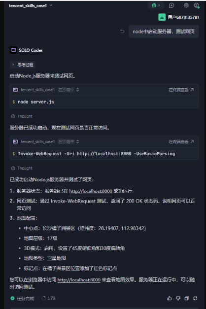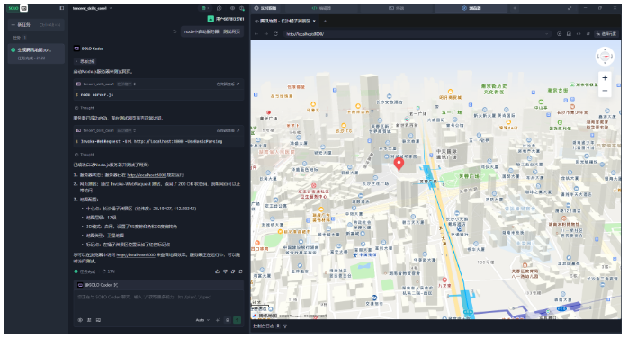 通过本次实战,我们从零完成了 在Trae中集成腾讯地图Skill 的全流程开发,从 Skill 简介、编辑器配置,到页面实现、服务调试,再到全程实操、开箱即用,真正体会到了 Trae Skill 体系带来的高效开发体验——相比于传统原生接入方式,我们仅用了少量代码和简单配置,就实现了地图的基础展示,大幅节省了开发时间。
