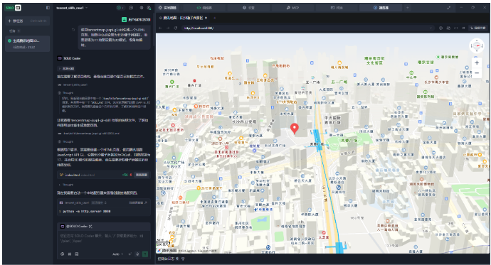 Trae持续进行优化,开始使用技能,并创建相应的地图页面,如下图所示: