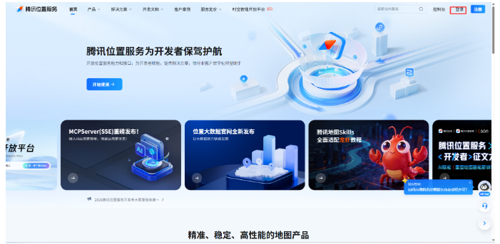 步骤1:打开 腾讯地图开放平台,注册/登录开发者账号(支持微信、QQ 快捷登录,无需额外注册);