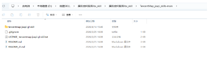 步骤1:安装腾讯地图 Skill 依赖(手动下载上传安装),首先到github上将腾讯地图的Skill下载下来,下载后在本地文件中目录如下:
