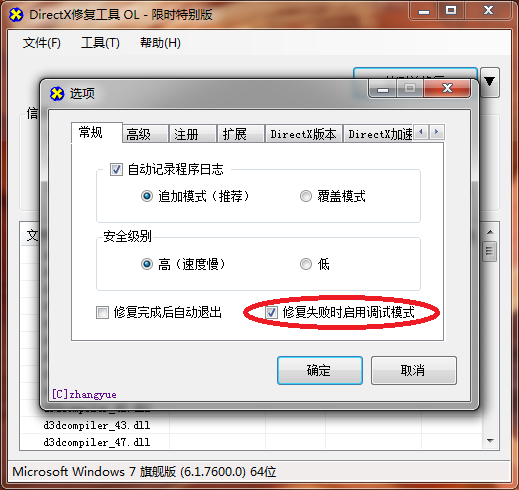打开“工具”->“选项”->“常规”对话框,确认“修复失败时启用调试模式”功能已勾选(如图2),同时需在扩展界面点击“开始扩展”按钮,确认程序已经是增强版