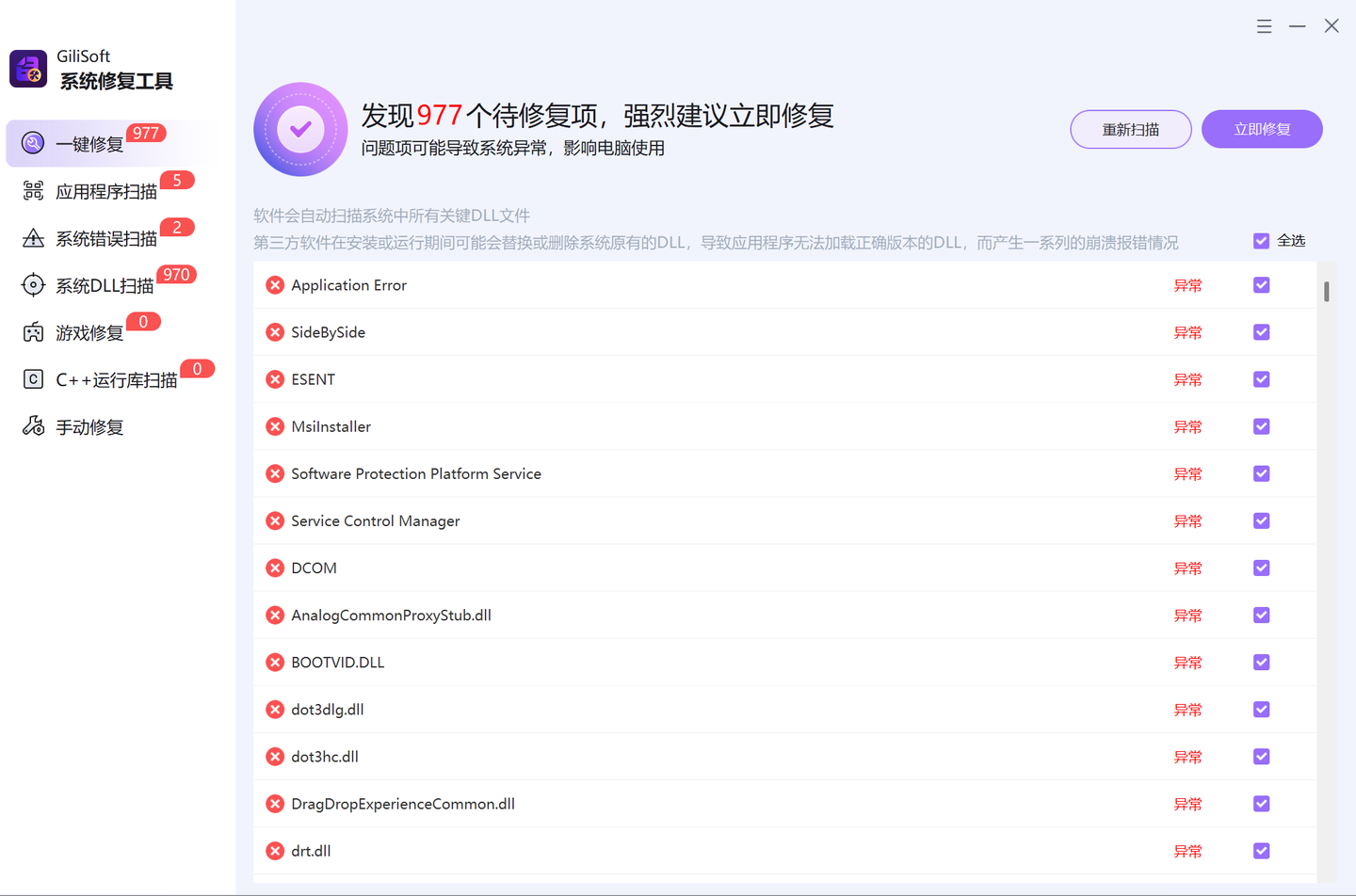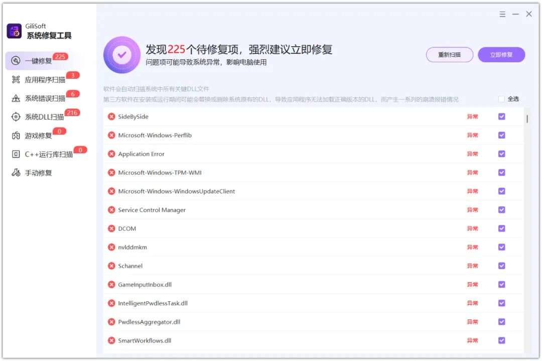 可以通过一键智能修复来自动扫描系统中所有需要修复的问题,并直接进行修复。