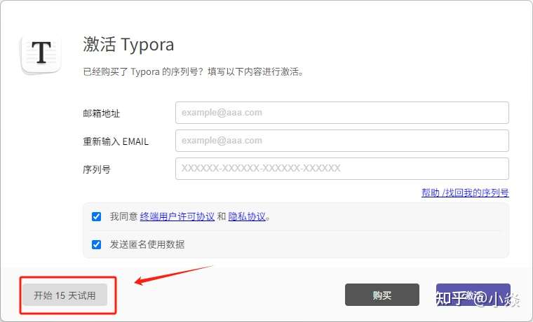 VEZ7NV-USYN3G-8TL2N3-DADUG41、打开 typora ,点击“输入序列号”:。