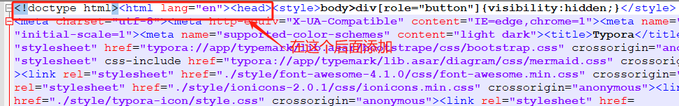 C:\Program Files\Typora\resources\window.html在 <!doctype html><html lang="en"><head>后添加代码,如以下图: