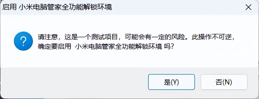 3.安装完成后,还会有一个「启用小米电脑管家全功能解锁环境」的弹窗,这个根据你自己的使用需求,需要功能丰富点的,就点击「是」来进行安装;