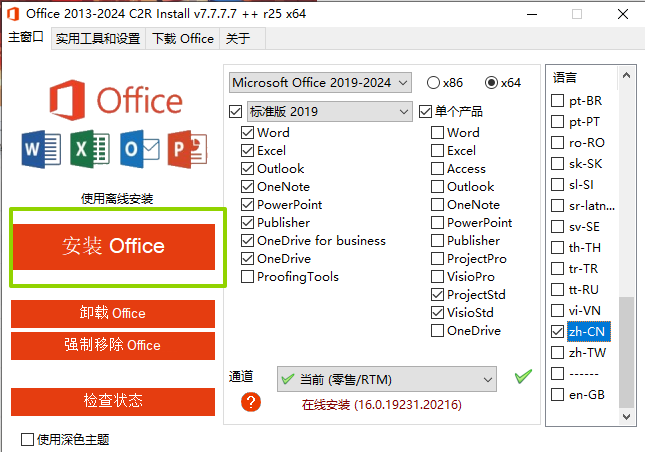 5.选择好了后,点击左侧安装office就可以了。