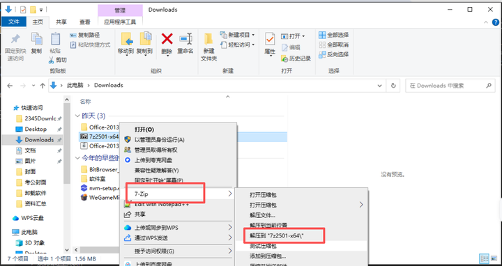 1.点击上面下载安装包,下载后解压(不要在网盘里解压),一般我分享的都是7-ZIP压缩包,所以要用他来解压。