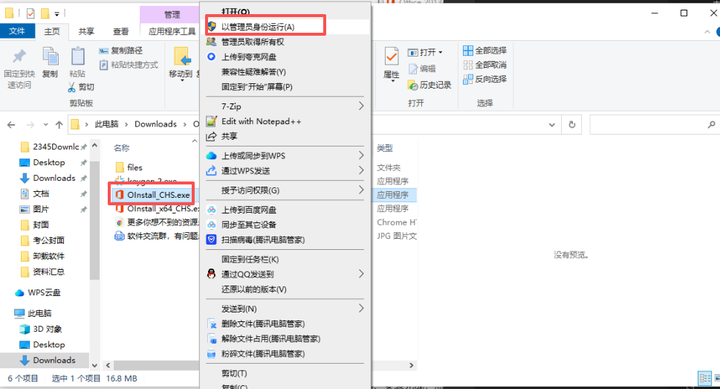 3.右键以管理员身份运行office安装程序。(我这里是安装的32位的)