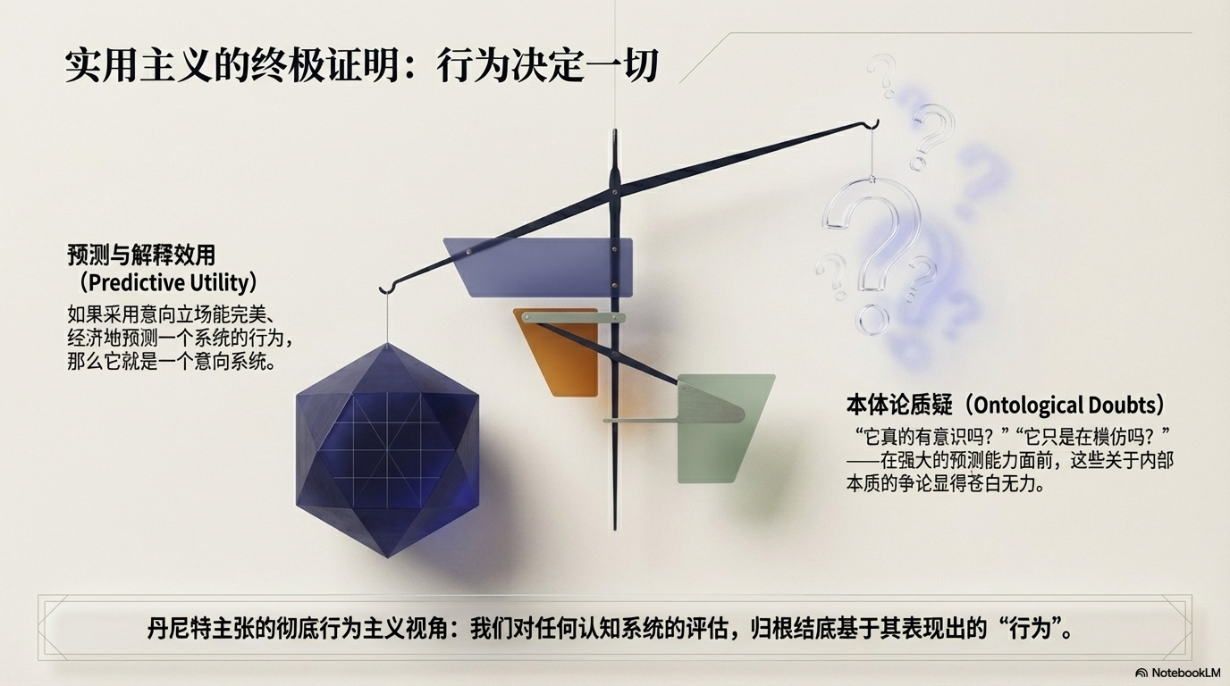 对于今天的大语言模型,这已不再是一个哲学思辨,而是我们与之互动时最自然、也最有效的方式。意向立场为我们提供了一个珍贵的透镜,透过这个透镜,我们不仅能更深入地理解这些日益复杂的AI系统,也能反过来重新审视我们自身关于心智、意识和理性的古老概念。它告诉我们,无论一个智能体的“血肉”是碳基还是硅基,当其行为足够复杂时,将其视作一个“有心智的它者”,便是我们所能采取的一种明智的立场。