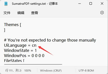 如果安装时没有选择中文,可以在菜单"设置"→"高级选项"中,找到"UiLanguage"选项,将值改为"cn",然后重启Sumatra PDF即可。