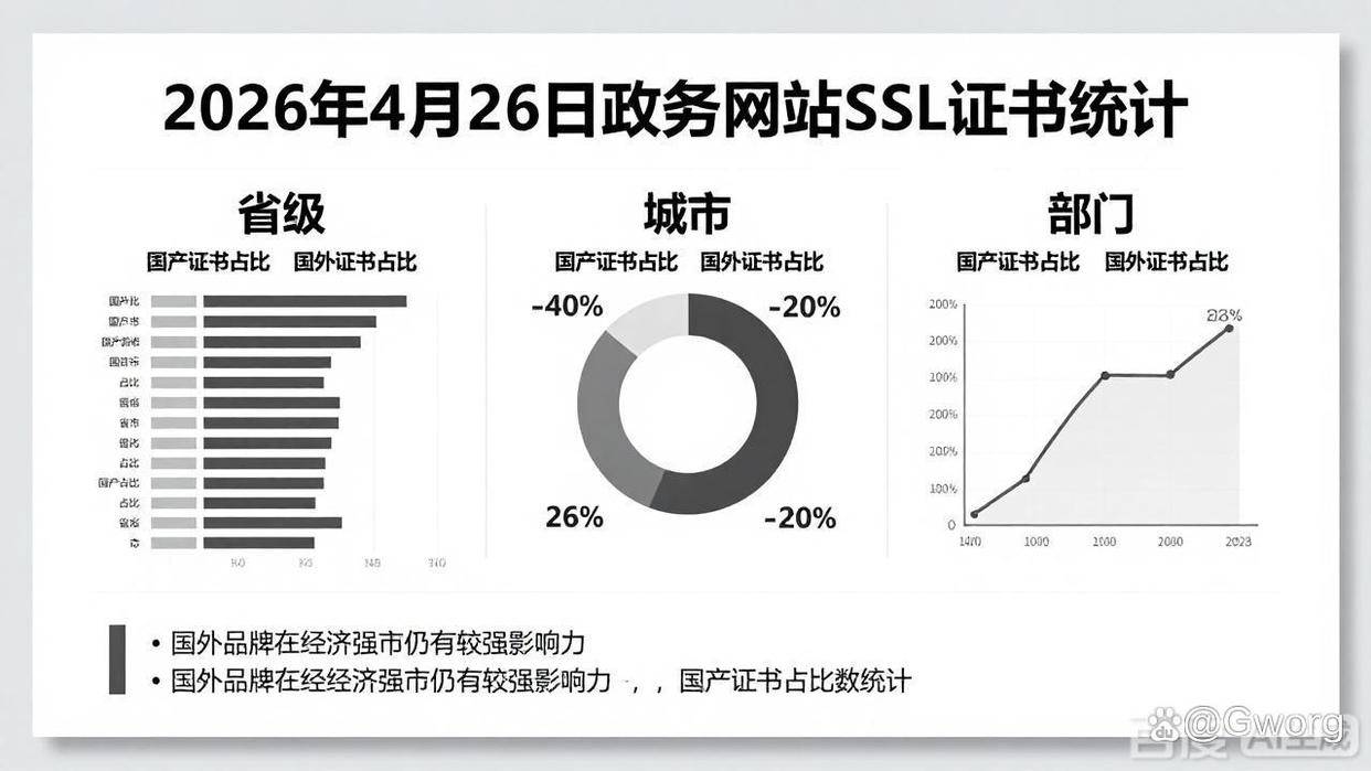 2026年4月26日统计政府省份网站、按经济总量(GDP)排名10个城市网站、国务院部门网站,使用国产SSL证书和国外SSL证书统计情况。