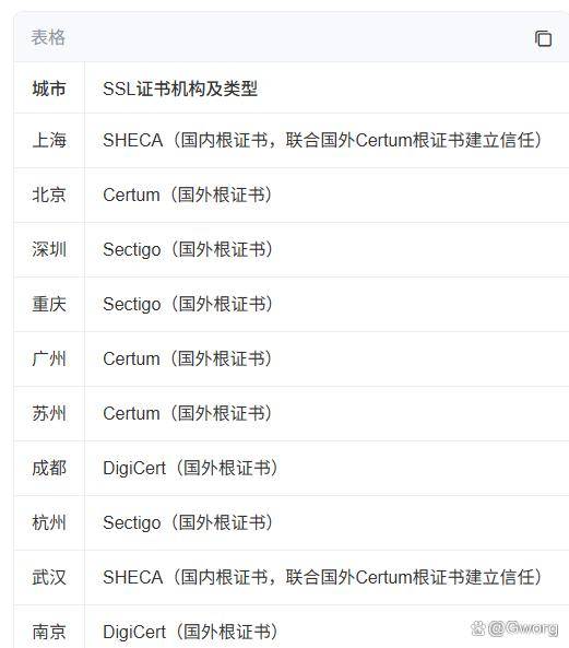 国外SSL证书:共8个城市(北京、深圳、重庆、广州、苏州、成都、杭州、南京),占比80%