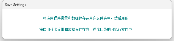 双击打开后,会提示选择 1、将应用程序设置和数据保存在用户交件夹中,然后注册; 2、将应用程序设置和数据保存在应用程序目录的可执行交件中;