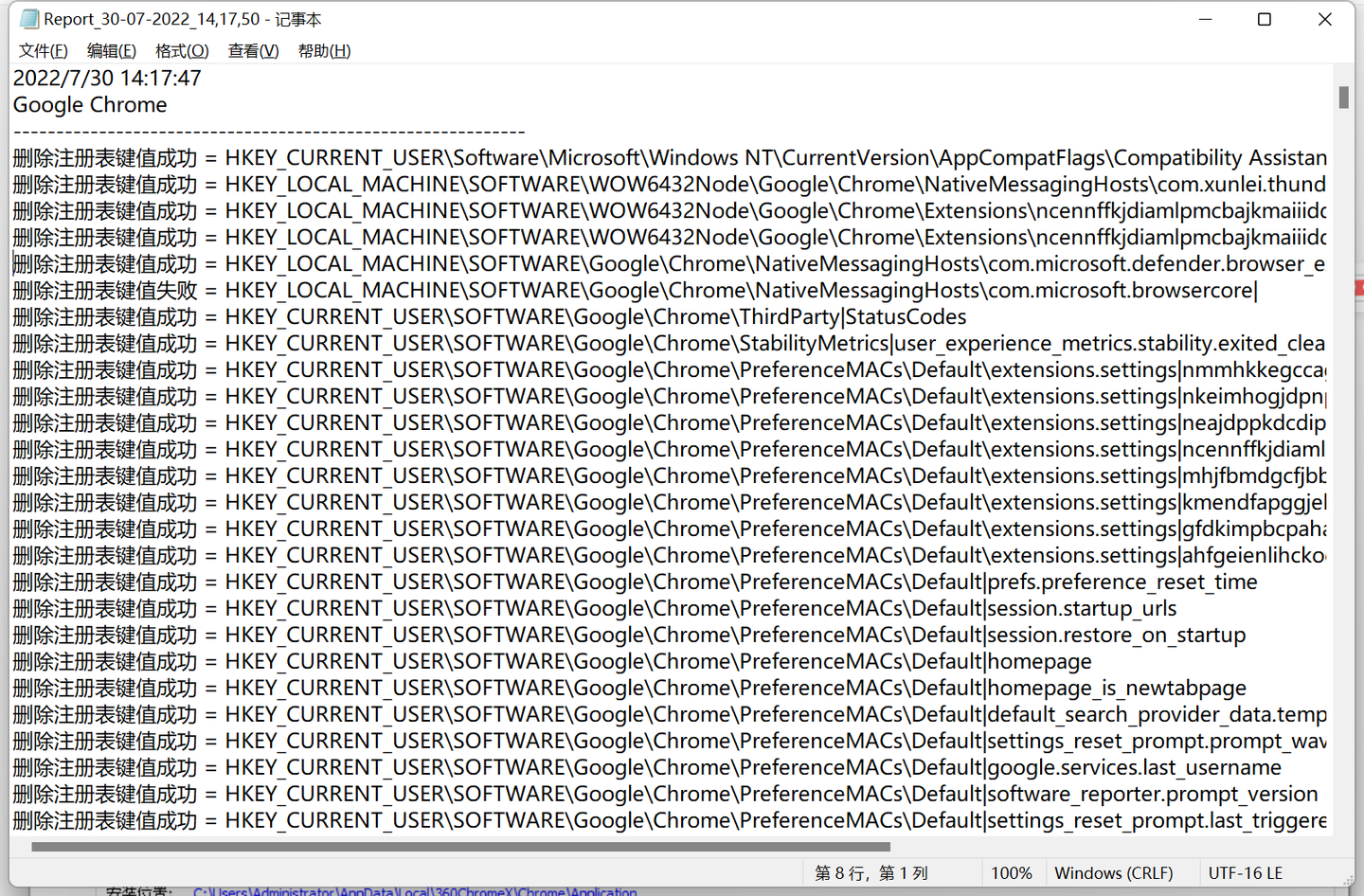 弹出的卸载软件清理报告