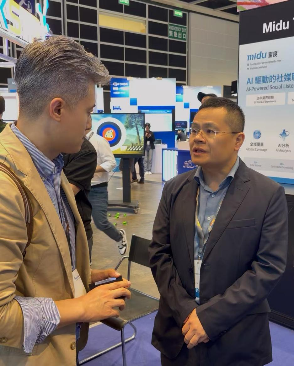 作为一家专注于大模型垂直应用的人工智能企业,另一家上海知名企业蜜度(Midu)在本次香港国际创科展上,带来了破局之道——社交媒体聆听及品牌洞察解决方案。双方案协同发力,构建跨文化“理解引擎”,为公共服务机构、媒体及跨国企业跨国经营、跨域发展提供智能化服务。