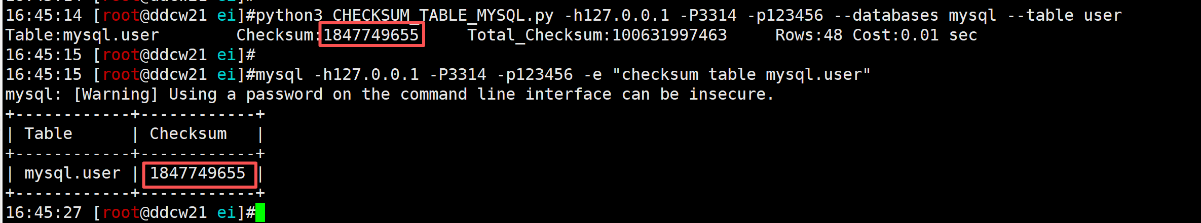python3 CHECKSUM_TABLE_MYSQL.py -h127.0.0.1 -P3314 -p123456 --databases mysql --table user