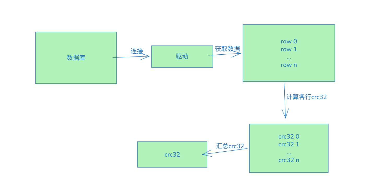 mysql中有个checksum table功能可以校验表,是server层实现的,不依赖存储引擎; 我们以前也讲过checksum table的原理: 就是各行的crc32相加.